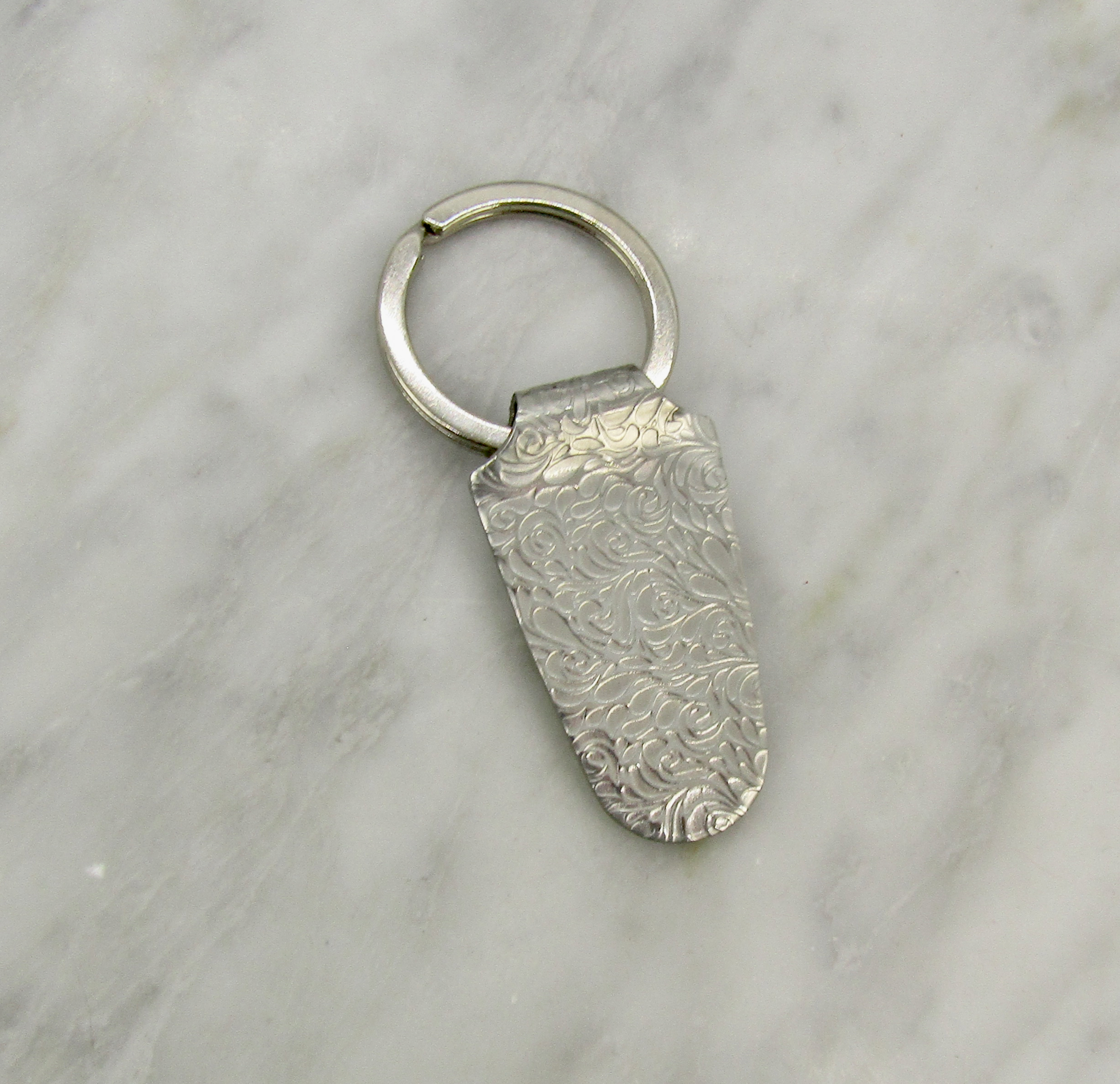 Beautifully textured, leadfree, pewter keychain, gift boxed and ready to give