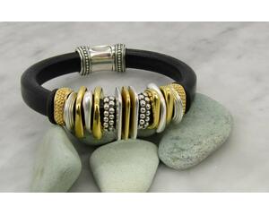 Mixed Metal Leather bracelet in gold and silver with a magnet...