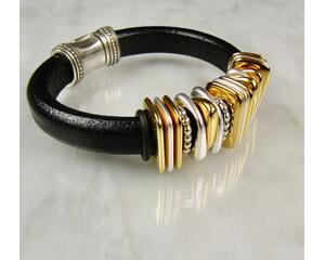 Mixed metal Leather bracelet with a magnetic clasp, the perfe...