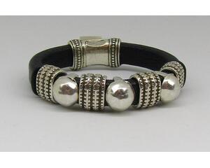 Leather and silver bracelet with a magnetic clasp, the perfec...