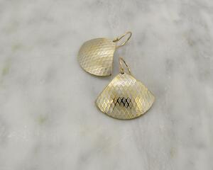 Scalloped edge earrings with a satin finish and 14 karat gold...
