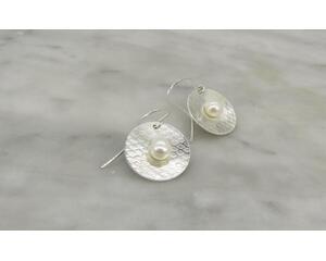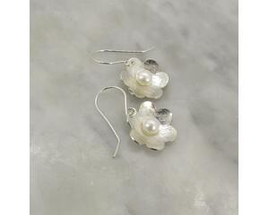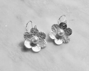 Flower Pearl Earrings, Beautifully Textured with sterling sil...
