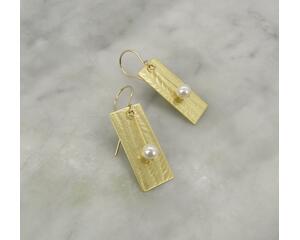 Rectangular Pearl drop earrings, with 14 karat gold filled ea...