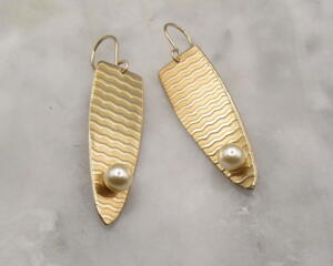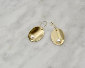 Long Drop Brass Pearl Earrings, with 14 karat gold fill ear w...