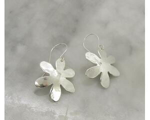 Sterling silver Flower drop earrings, beautifully hammered, t...