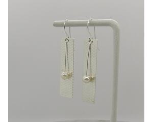 Sterling silver rectangular Pearl Earrings with sterling silv...