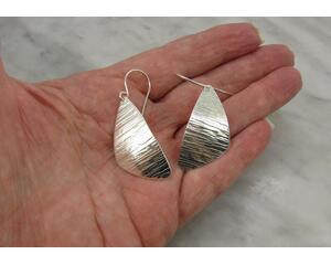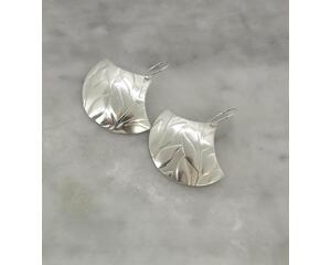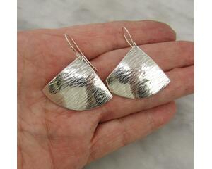 Large Sterling Silver earrings, Beautifully textured fan shap...